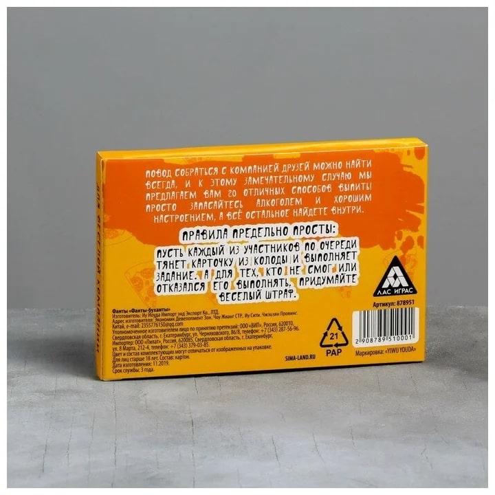 Купить игра для компании "фанты буханты" 20 карт от 100 руб. с доставкой до пункта выдачи в Невельске. Интернет магазин ДекаМаркет. Оплата при получении.